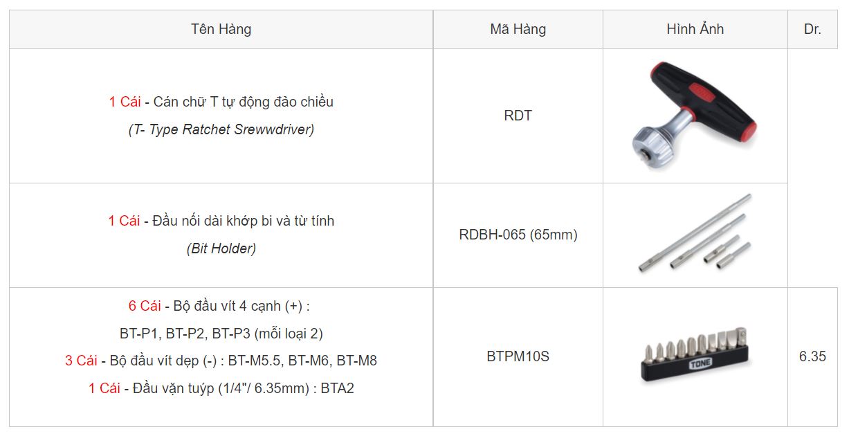 TONE cung cấp một loạt các bộ công cụ chất lượng cao được thiết kế cho các mục đích và ứng dụng cụ thể. Với tính năng tuyệt vời và tính khả thi, bộ công cụ TONE hỗ trợ làm việc an toàn và đáng tin cậy.