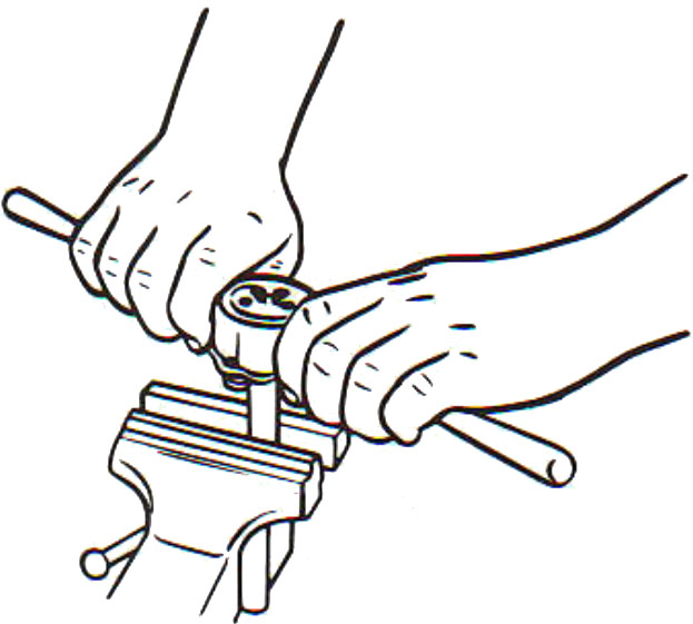 Cầm tay quay bàn ren sau khi bắt đầu cắt ren