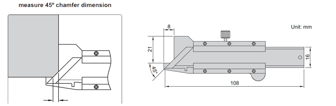 - Sử dụng để đo kích thước cạnh vát 45 độ trên chi tiết.