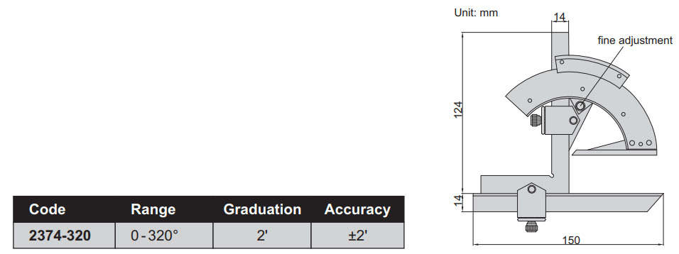 Thông số kỹ thuật của Thước đo góc nghiêng Insize 2374-320 0~320 độ