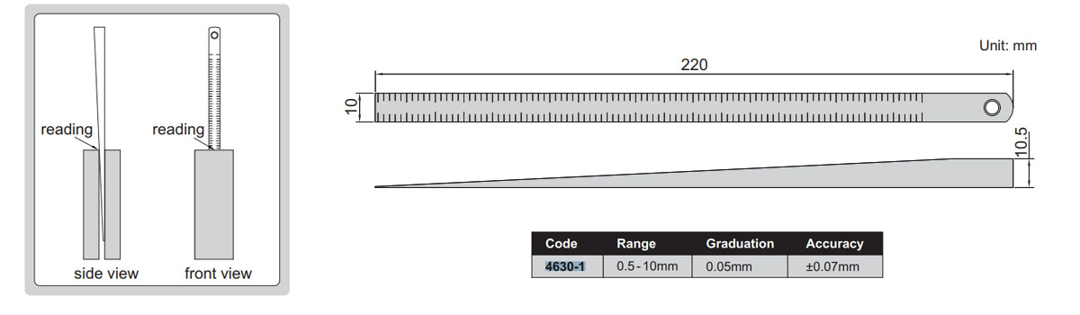 Thông số kỹ thuật của Thước Đo Khe Hở Insize 4630-1 0.5~10mm 0.05mm