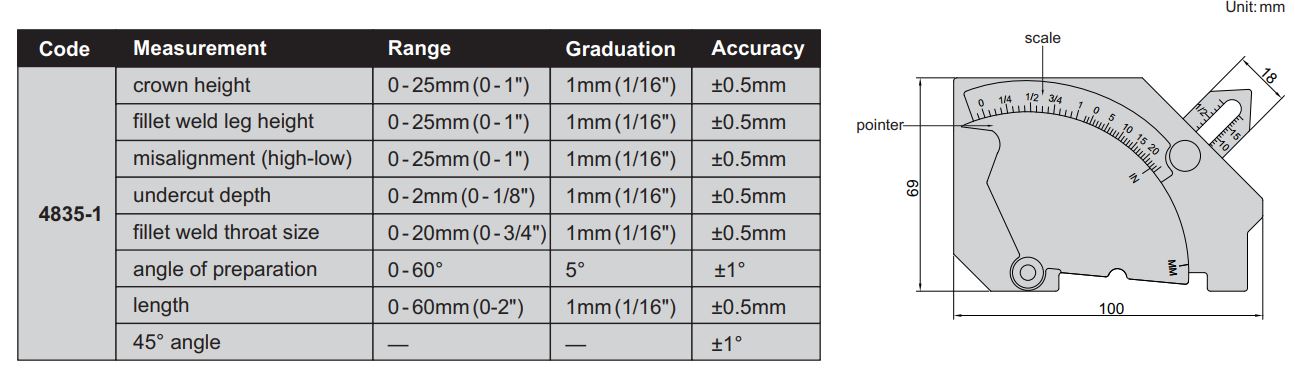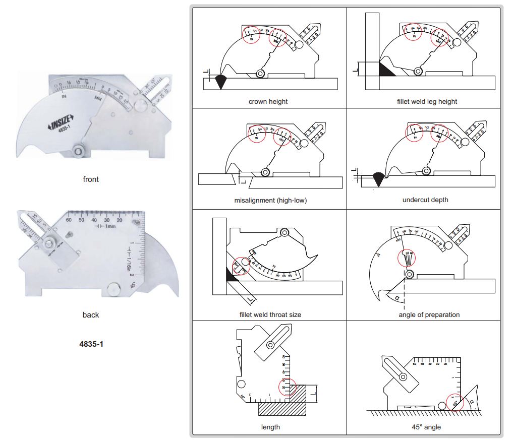 Thông số kỹ thuật Thước Đo Mối Hàn Insize 4835-1