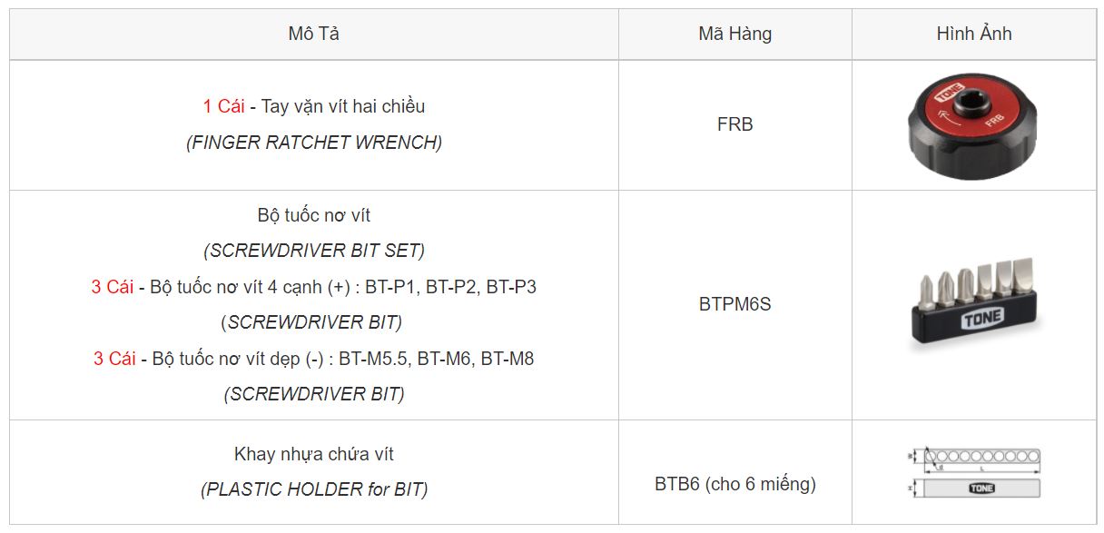 TONE cung cấp một loạt các bộ công cụ chất lượng cao được thiết kế cho các mục đích và ứng dụng cụ thể. Với tính năng tuyệt vời và tính khả thi, bộ công cụ TONE hỗ trợ làm việc an toàn và đáng tin cậy.